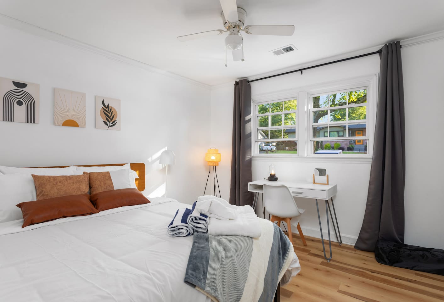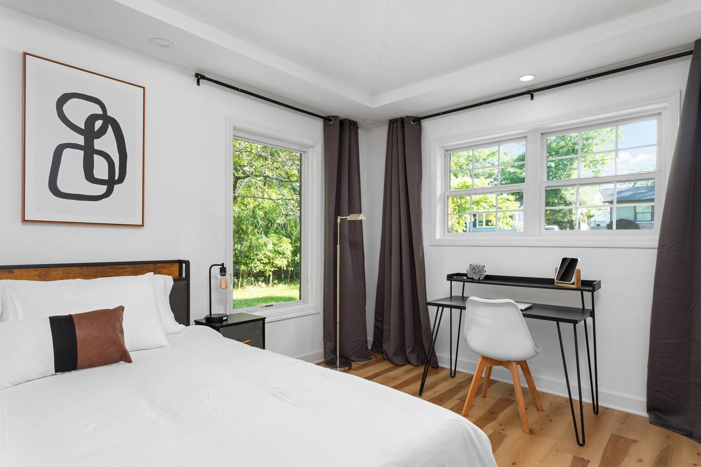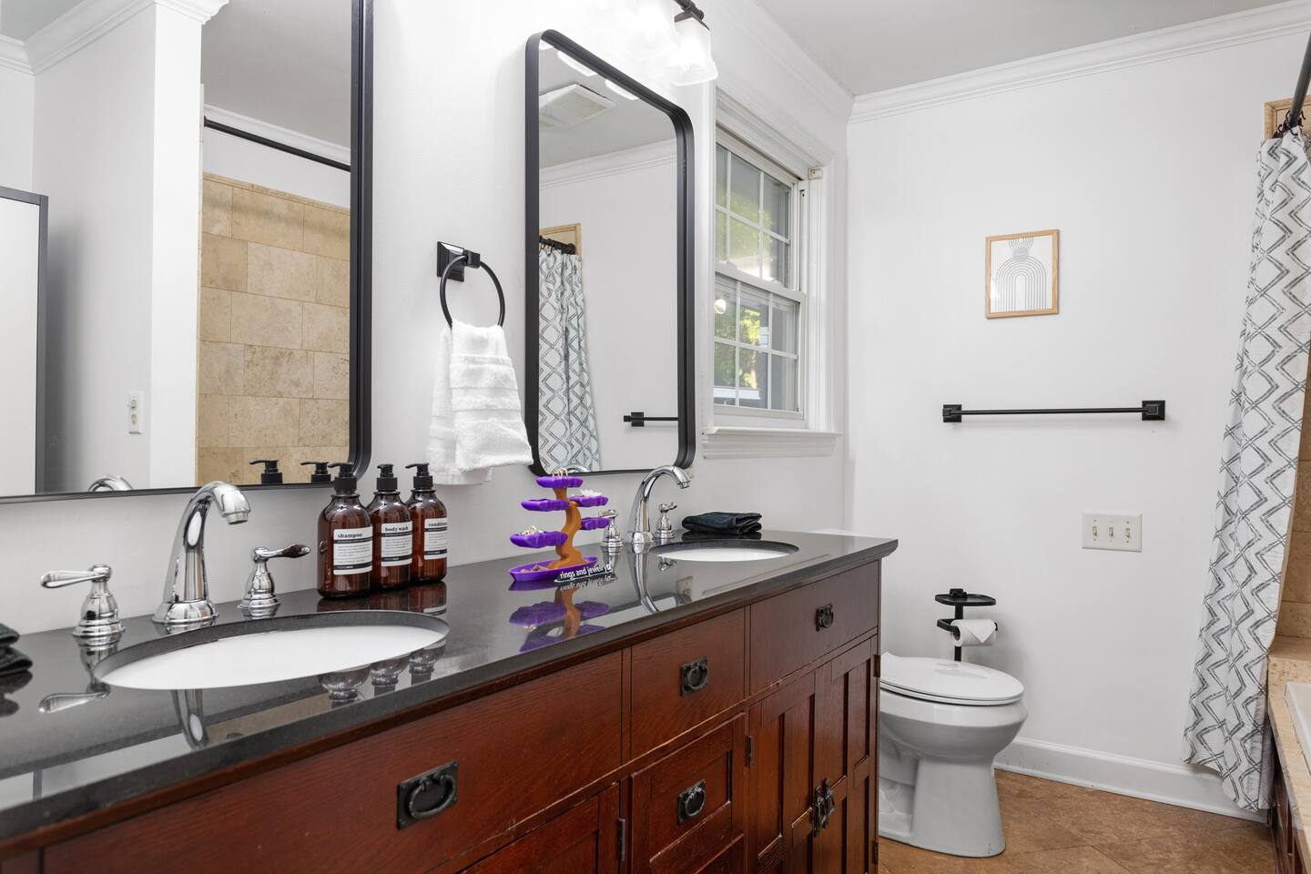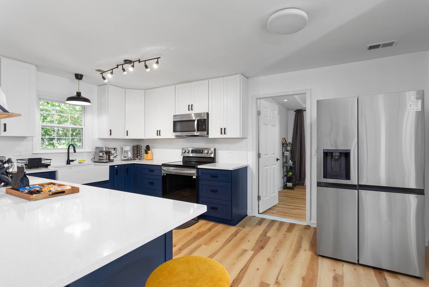 Highlights: ⭐ Walking distance to local restaurants, coffee shops, wine bars, and breweries ⭐ Super fast wifi (1 gigabit), perfect for movie streaming and remote work ⭐ Modern kitchen, equipped with brand new appliances ⭐ Including a Breville espresso machine for pouring your own espresso drinks ⭐ Spacious fenced backyard with outdoor furniture, firepit, grill, and games; great for outdoor lounging and dining and for pets to frolic in ⭐ Child-friendly with a high chair, booster chairs, a pack and play set, a play mat, and kid dinnerware available ⭐ State-of-the-art Electrolux washer and dryer ⭐ Beach chairs/umbrellas/towels provided Bedrooms: ⭐ Bedroom #1: King bed with ensuite bath, extra twin bed available if needed ⭐ Bedroom #2: Queen bed with ensuite bath, extra twin bed available if needed ⭐ Bedroom #3: Queen bed with shared bath ⭐ Bedroom #4: Bunk bed (Full + Twin) with shared bath All bedrooms are equipped with hotel grade bed sheets and mattresses, ensuring a comfortable and relaxing nighttime experience Living room, dining room, and kitchen: ⭐ The living room features a 65’’ smart TV with 5.1 channel front surround sound speakers, perfect for family/friends movie nights ⭐ The dining table can seat 8 people for a good home-cooked meal ⭐ The kitchen has all the appliances, pots, pans, dinnerware, utensils, and basic cooking supplies you need. The LG smart refrigerator has lots of storage and produces craft ice spheres, which are perfect for making your own cocktails and mocktails. The Breville espresso machine is great for discerning coffee lovers Backyard: ⭐ Large, fenced backyard with outdoor lounge furniture, a grill, a firepit, and games, suitable for family and friends gatherings Laundry room: ⭐ The laundry room has a brand new Electrolux washer/dryer stack, laundry detergent, and an ironing board and iron Parking: ⭐ The driveway parks four cars comfortably